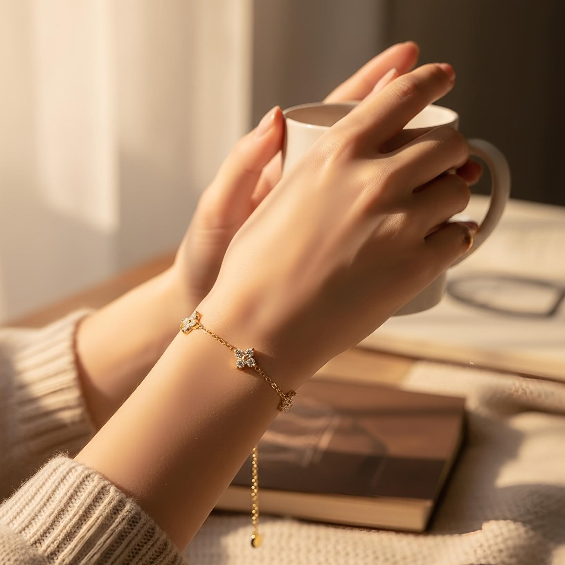 Delicate elegance, timeless sparkle. This gold chain bracelet features dainty diamond accents and floral-inspired motifs — the perfect touch of luxury for every day. Wear it solo for subtle sophistication or layer it for a radiant statement.